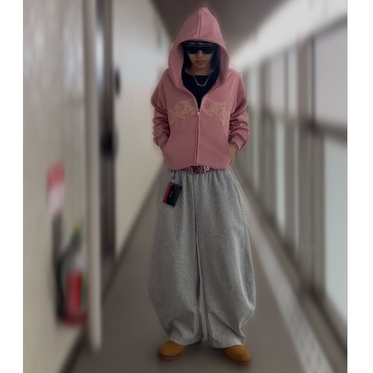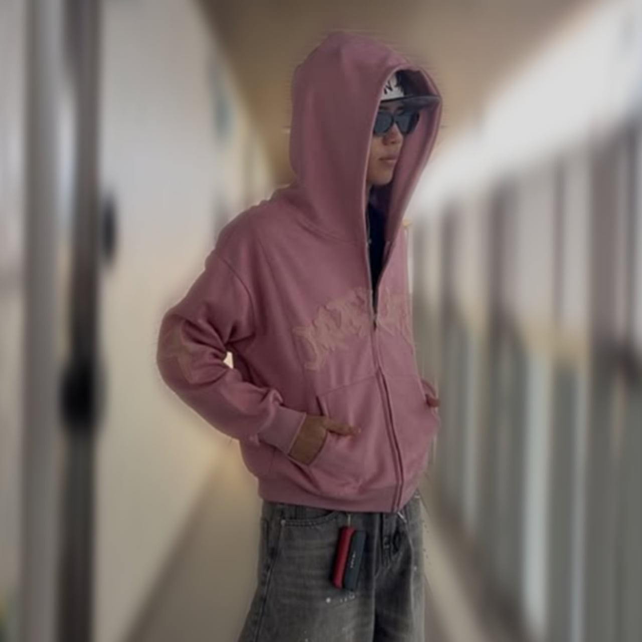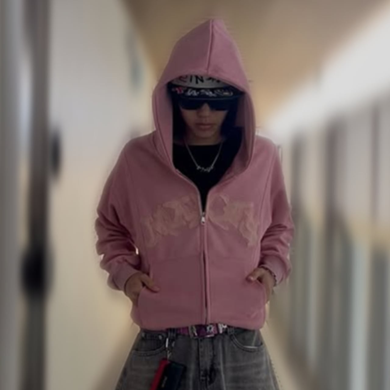 ダブルジップアップパーカー ピンク ブラック 黒 JH00006 【S~XLサイズ】